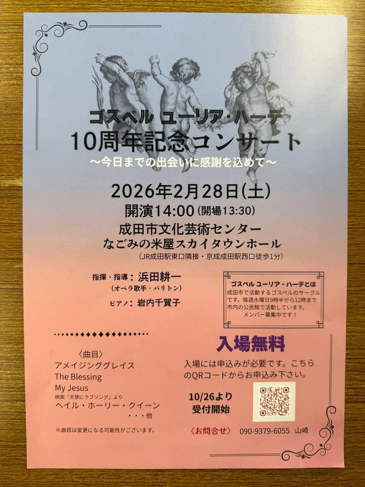 2026/2/28(土)成田駅近くのスカイタウンホールにて10周年記念コンサートを行います。