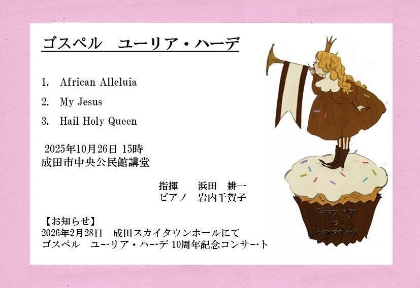 - 2025年10月27日公演後記2025/10/27 成田市ゴスペル「ユーリア・ハーデ」公民館祭り出演